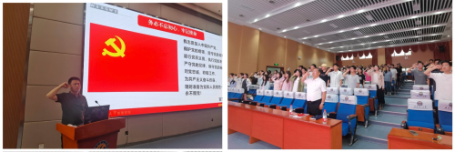 张冰副书记带领全体毕业生党员重温入党誓词,号召同学们在新的征程上,以党纪为“标尺”校准人生“坐标”,将个人理想融入国家发展,充分发挥先锋模范作用,以实际行动践行入党誓言。